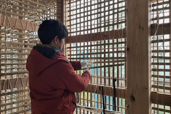 左官「彩築舎」が竹小舞を編み