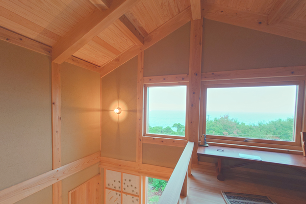 マリンランプの影と水平線が連なって【久木の家】